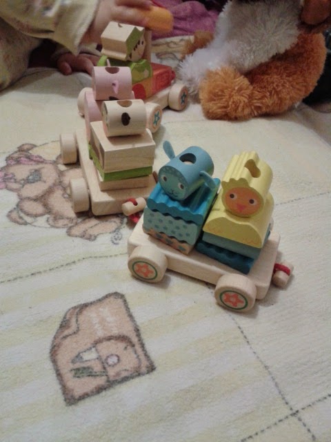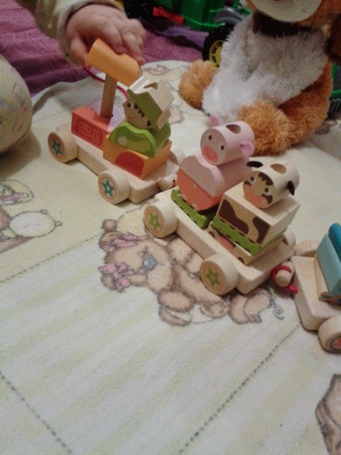 Далее наш подарок с папой паровозов Djeco, очень хотела его ещё на годов подарить, но вышло только к НГ, качество на высоте, интересно и занимательно!!! Возим за веревочку, надеваемое на штырьки как по принципу пирамидки, в общем довольны и оч.здорово!!! Играли в новогоднюю ночь, не дождались утра)))