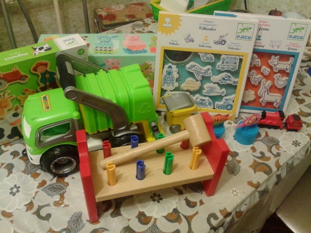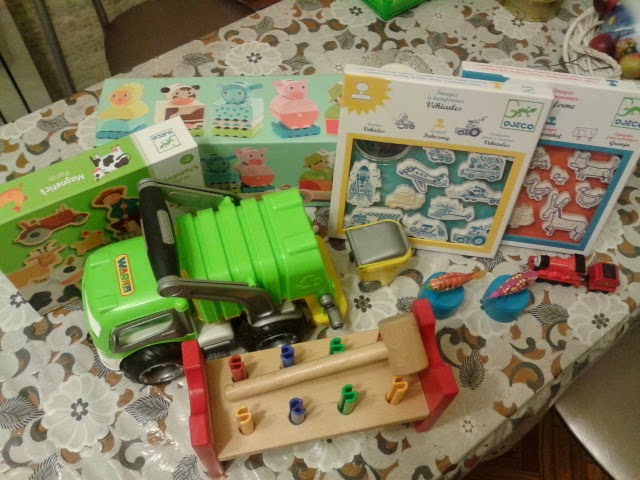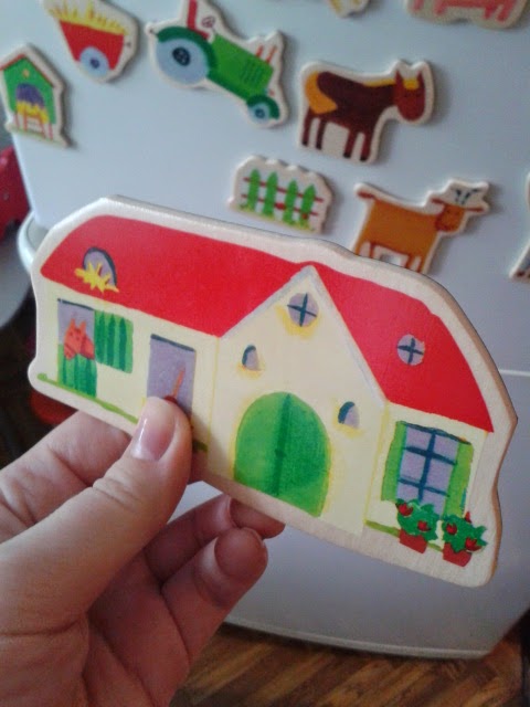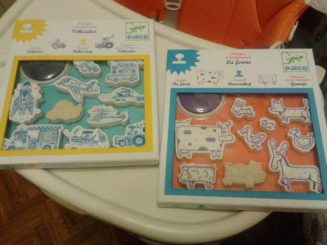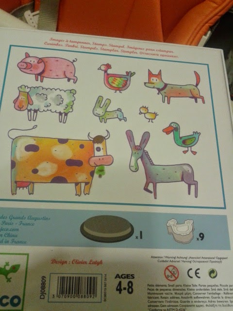Ещё мы подарили от нас с мужем магнитики Ферму и штампы от Djeco.