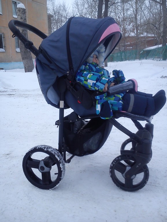Теперь о минусах. На днях выпал очень сильный снег, замело конкретно и проходимость коляски очень подвела. Можно сказать тащила ее на себе((( не айс.... По сравнению с нашим икс лэндэром рядом не стояла, там просто танк, прет через сугробы и грязь! еще раздражает накидка на ножки, она там вообще никакая, по бокам дырки, крепится только на двух кнопках к капу и на резиночке к подножке, если деть начнет пинаться,она попросту слетит, и к слову узковата поэтому на бока не натянешь. раскрутились болты на регулировке капюшона, один потеряли, прикрутили другой,мелочь, а бесит. приходится вечно подкручивать. Сломался тормоз, и я ума не приложу как сделать, муж еще не смотрел.