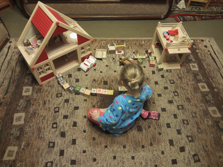 Сразу хочу сказать, что я не люблю пластиковые и интерактивные игрушки, не люблю раннее развитие и связанные с ним "развивающие" игрушки, верю в свободную игру, мы с дочкой обожаем деревяшки, тряпочки и кукольный театр. Поэтому и игрушки у нас соответствующие.