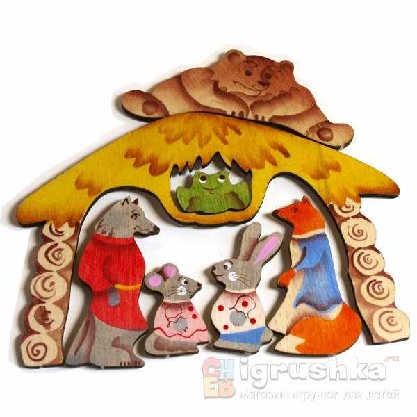 - сказку "Теремок" тоже от Томика (это подарок из садика) - это такой дубль, который хранится у бабушки, потому что у нас дома есть деревянные животные уже...