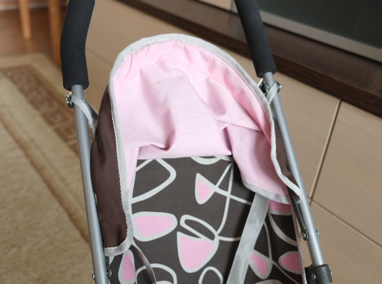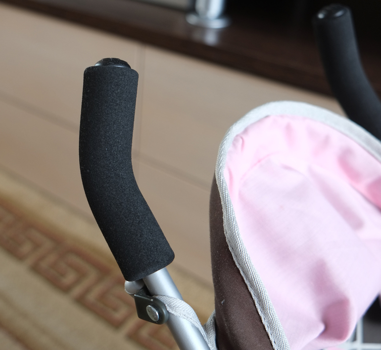 Ручки из мягкого материала (как на настоящих колясках). Я боялась, что с ним что-то случится, но нет, полностью все целое. Пока)) Уточнение апрель 2015 года - есть пара трещин на этом материале, но я ловила дочку на том, что она грызет их!