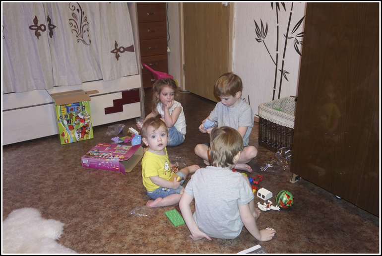 Фотографироваться дети не хотели категорически. Какие съемки, когда тут такой набор! Максимум, что мне удалось - словить Серёжин слегка раздражённый фейс после моего восьмого подряд: "Серёженька, а взгляни на маму!" Смотрел все 8 раз, но на долю секунды, и только один кадр из восьми мой затвор сумел поймать в нужном моменте, а именно - когда взгляд направлен в объектив! Глаза, кстати, позеленели у мальчишек.
