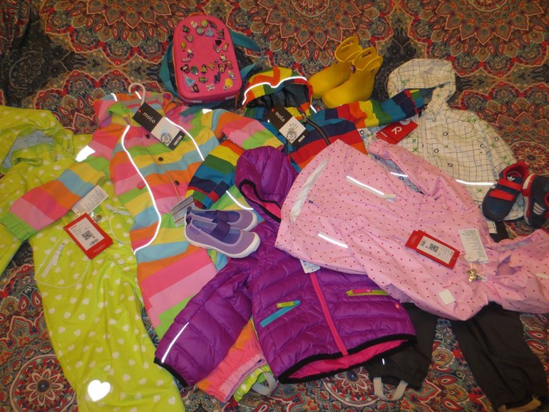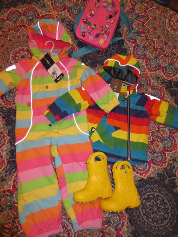 Набрала в "Кораблике" реймы на весну. Странно конечно ,что они весну перед сезоном распродают. Взяла 2 слитника ,плащик и курточку у которой отстегиваются рукава( заявлена как пуховик,но на мой взляд уж очень тоненький). Скорее всего будем носить как жилетку. Molo тоже на весну докупила, расцветки как в прошлом году:) ну очень уж люблю я радугу,а прошлогодние впритык