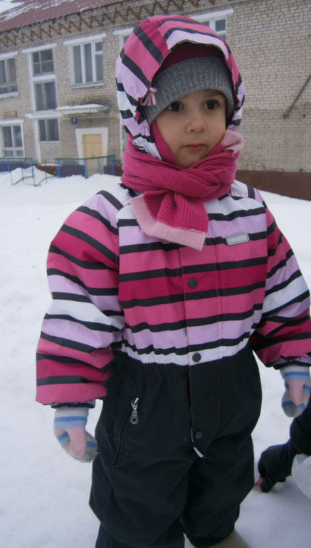 2. Куртка и штаны Питерского производства, сама бы такое не купила. покупала мама с теткой. Цена тоже больше 3тр. Тяжелый, но теплый. Жилетка меховая внутри, шею закрывает хорошо, ребенка в нем сложно двигаться. В нем мы упали и ударили о подоконник в развивашке, теперь у нас под глазом шрам. Мех родной, очень пушистый, натуральный.