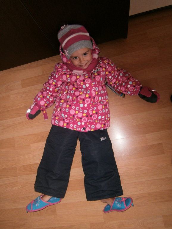 7. Комплект Tokka . На еврозиму отлично, внизу штанов резинка, которая держится намертво, куда ее прилепил. там и останется. В куртке нет резинки от снега. На рукавах резинка и регулировка, когда выбирала между ним и Реймой, это оказалось решающим фактором, т.к. дочка билась в истерике и говорила что рукава ужасные и она такое носить не будет у Реймы. Хотя расцветка была у Реймы приятнее. Штаны здесь на подтяжках, резинках. Светоотражатели видно на фото, что тоже хорошо. Карман на штанах пользуется спросом больше, чем на куртке. Застегивается без проблем на молнию и кнопки. Гуляли вчера в -3-5, вспотела дочка.