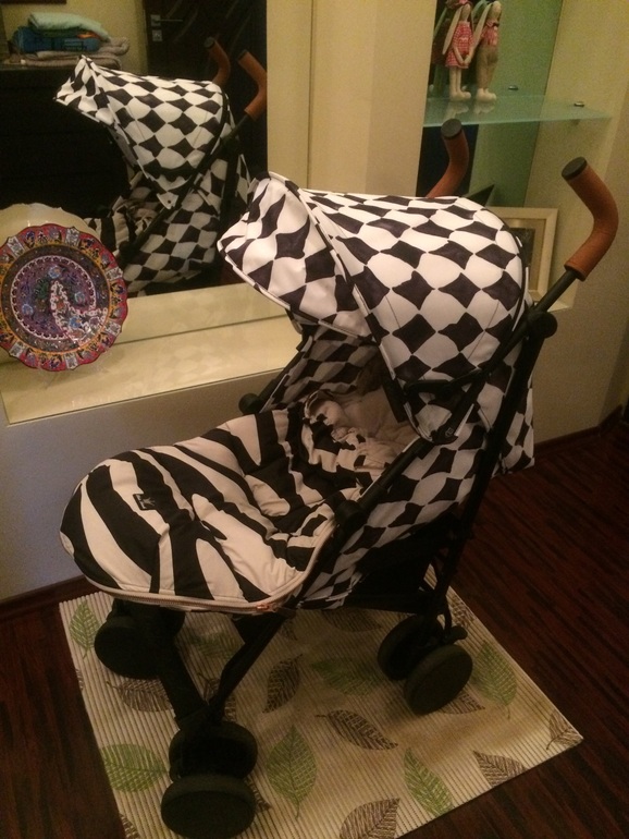 После неудачного опыта с Бритакс Аффинити и ее продажи была куплена трость, так как малышу было уже 7 месяцев. Хотелось не только удобную и функциональную, но и красивую и необычную. Была выбрана трость Elodiedetails в цвете Graphic grace. Вместе с коляской купили теплый конверт, дополнительный матрасик, универсальный бампер и универсальный подстаканник.