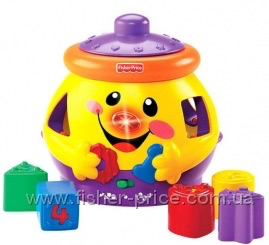 Волшебный горшочек Fisher price хорош, но многие пишут, что детальки в прорези тяжело вставляются, и ребенку порой это не под силу. У нас не было, поэтому точно не подскажу. Месяцев с 6 играли с интерактивными кубиками Умка, у них функций больше, можно и пощупать, и подвигать, и покрутить, и нажать. После года интерес угас. На НГ подарили Волшебный кран, играет , но без интузиазма, т.к. ей интереснее подойти и обычный кран включить, видимо, мы его переросли. А вам должно подойти, самое время для него.