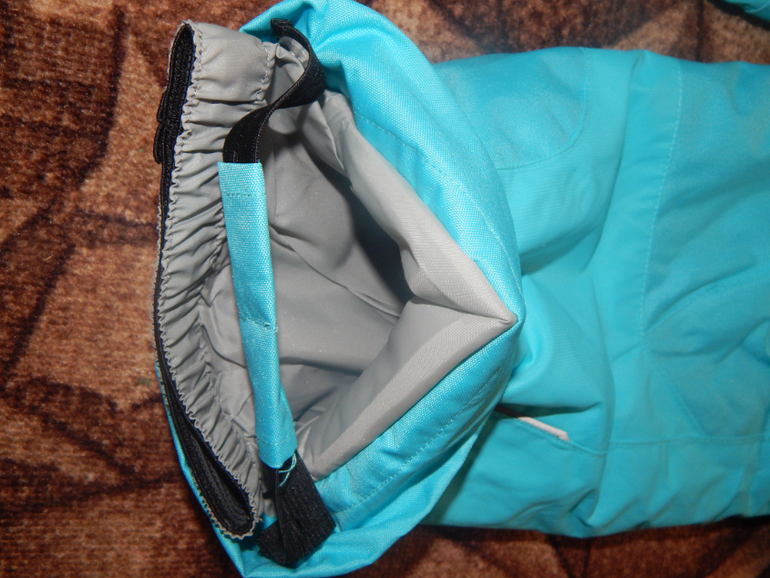 Вставляла резинку в низ штаников. Так они садятся на сапог и не рвутся об асфальт.