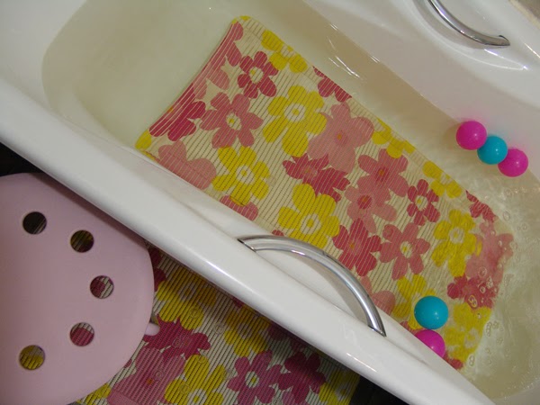 Эти бюджетные коврики на присосках марки HomeQueen мы приобрели на смену коврику Mothercare.Один мы используем в ванной, чтобы Лев и Варя не подскользнулись и было удобно сидеть. Второй кладём на пол - тоже, чтобы ноги не разъезжались на мокром от брызг полу. Расцветки у ковриков бывают самые разные, но я бы рекомендовала остановиться на синей палитре - она визуально делает цвет воды более приятным. Наша розово-жёлтая поляна делает и без того желтоватую водопроводную воду ещё более жёлтой.