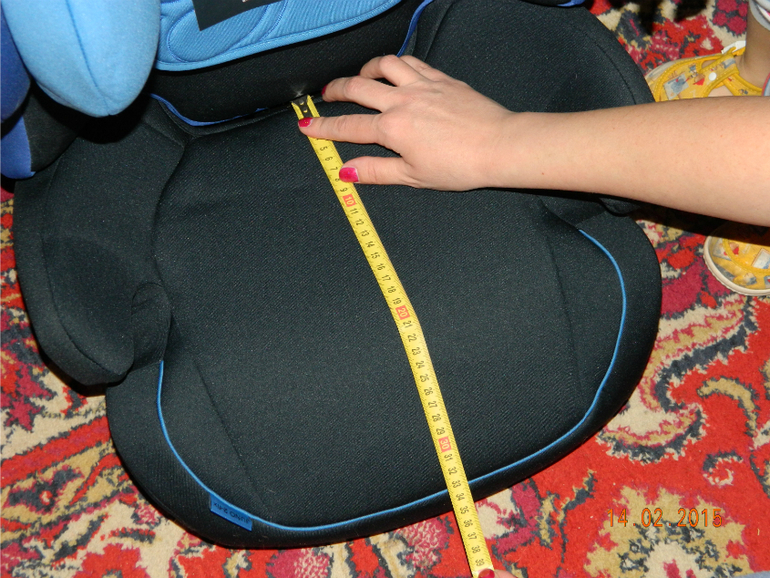 Ширина и глубина сиденья. Сиденье не самое широкое, но подлокотники расположены под небольшим углом к сидушке , поэтому являются как-бы ее продолжением и думаю, что поместится даже плотный малыш ( моя дочь в памперсе и трикотажных штанишках занимает примерно 2/3 ширины сидушки)