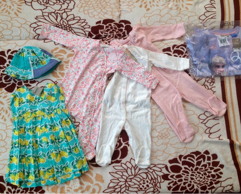 вот, что мы взяли на апрель-июнь (слипы) и на июнь-август (платья и комбезы). Пока что некс нам шел размер в размер, не большемерил. Надеюсь тут все так же будет!