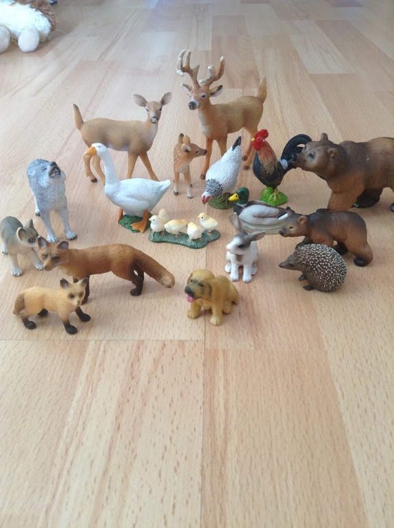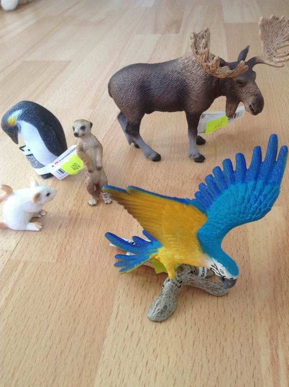 Спасибо! Да, ежик даже больше понравился, чем у шляйх(потому что у них он с листочками). Нам привезли жирафа, слоненка(слон уже был), тигра с тигренком, льва со львенком, леопарда, крокодила, белого мишку с медвежонком, бурого мишку с медвежонком, овчарку, кошку, кенгуру, черепашку, вроде все) и еще у нас были лиса, волк, свинья, коза, курица, корова, жеребенок другой фирмы, mojo. Я их для плаката собираю) но теперь уже в плане фигурок тоже шопоголизм начался:)))