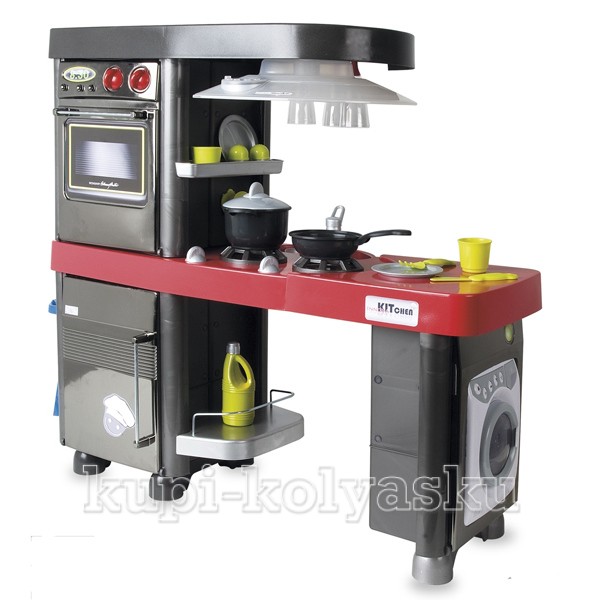 Мы нашли её через интернет магазин. Кухня отличная! Очень играбельная!!! Посудомоечная и стиральная машины, как настоящие! Посудомоечная даже с водой)) Есть подсветка, стаканы вешаются, магнитная доска, мусорнве вёдра, одежда повара! Шииииикарная!!! Всякие Elс, смоби и икеи просто рядом не валялись!!! Я их всех в живую щупала. Вот только не знаю, поставляется-ли она сейчас? Я её пару месяцев назад искала в подарок, ни где небыло((