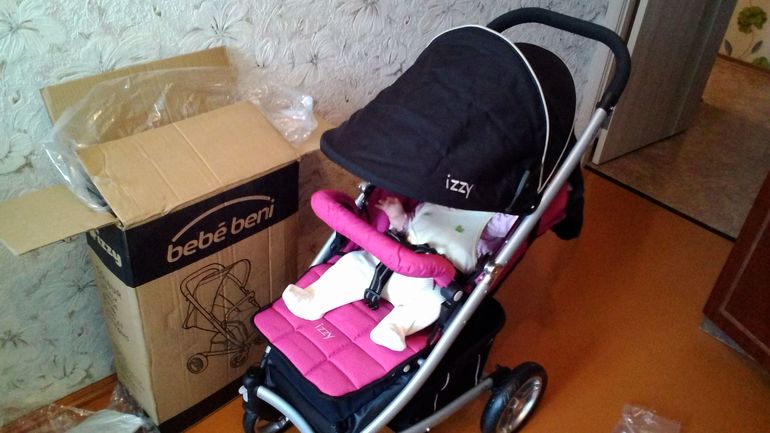 Выставка наших колясок (только хвасты)Моя последняя красотка √7,сейчас на ней катаемся Roan BebeBeni Izzy ,только привыкаем к ней и чувства разные по отношению к этой колясочке ,но одно могу сказать ,пока я довольна:-) Заказала я ее у официального представителя в Москве ,ждали 3 недели ,и вот свершилось первое впечатление: красивое сочетание цветов ,фукция с черным ,внешний вид модный:-) колеса справляются с бездорожьем хорошо,даже на удивление не фиксированные передние колеса легко преодоливают ямки.Малышка, на удивление , в ней спит ,для меня это главное!обычно в других коляках она требовала ,чтоб ее взяли на руки:-)Минусы : нет смотрового окна;есть щели,нужно дорабатывать ;передние колеса потрескивают,нет кормашка,нет бортика внутри коляски,нет мягких подушек на ремнях,нет матрасика.Плюсы: красивая,хорошая ткань,отличный кап,закрывает и от солнца и от ветра, широкое и длинное спальное место,хорошие большие колеса,все колеса легко снимаются ,колеса из пенорезины на подшипниках,отличный плавный ход, наклон спинки регулируется ремешком ,очень плавно можно опустить спинку ,не разбудив ребенка,люлька находится на весу и плавно укачивает малыша, высокий и теплый чехол,отличная подножка,удобная ручка,удобно и компактно складывается и раскладывается,но главное это вес всего 8 кг и ширина шасси всего 55,это позволяет зайти в любые двери:-) пока она моя любимка:-)