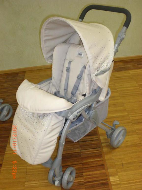 Цвет подойдет, но без страз. А вообще коляска фиговая, у нас такая, хоть и крепкая, но колесишки отстойные, с тяжелым ребенком не вертятся, да и кап никакущий.