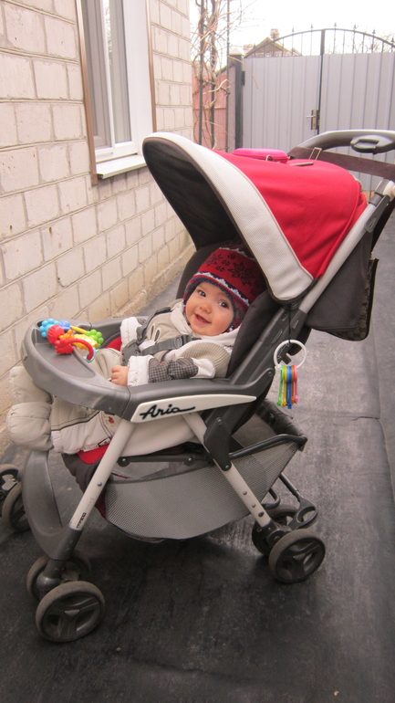 Прикольный такой довольный! а я тоже вот на днях буду покупать коляску Б/у тоже только в размышлении какую брать так как наша колясочка окончательно сломалась уже докатаем до победного.