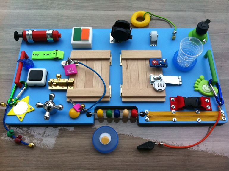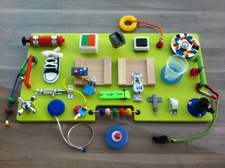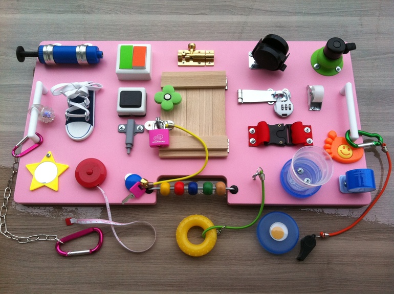 ИгрушкиЭто не реклама. Я готов делиться советами по изготовлению Бизибордов, которые развивают моторику и логику у детей от 8 мес.