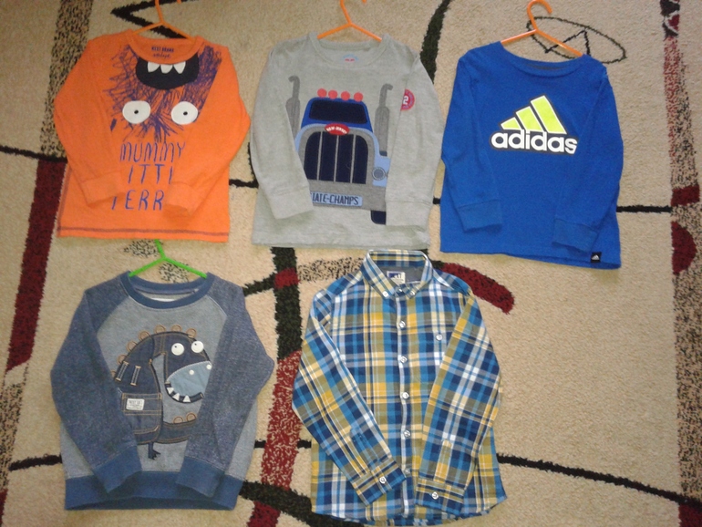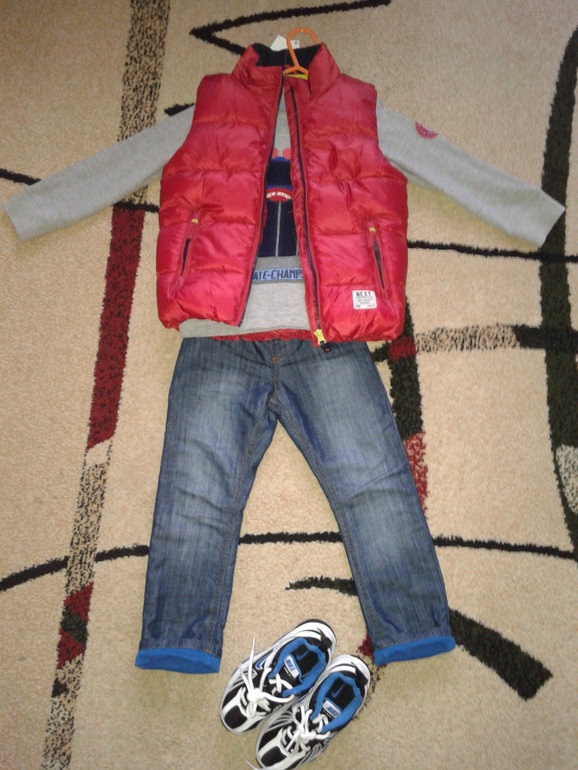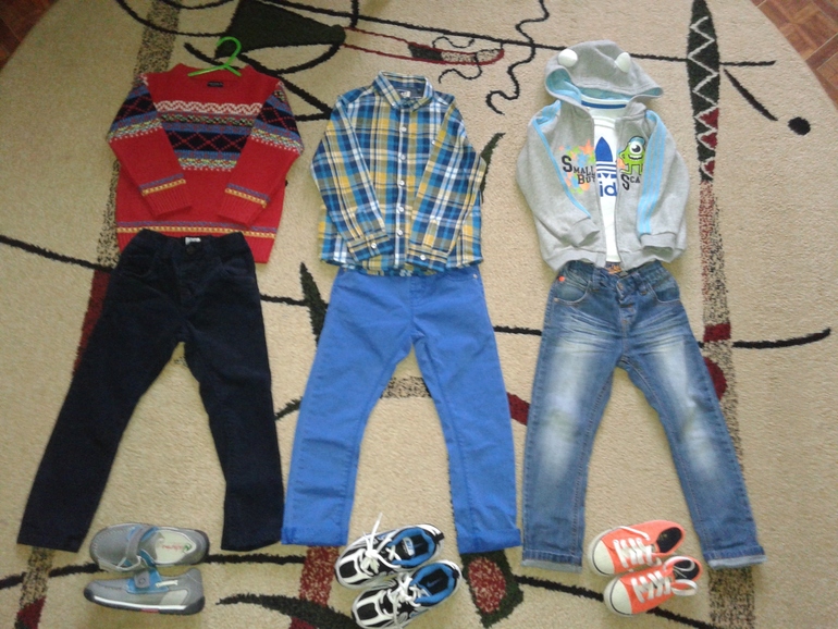 Вещи размером 104-110. Ниже фото малыша ростом 103-104 см. и весом около 18 кг.