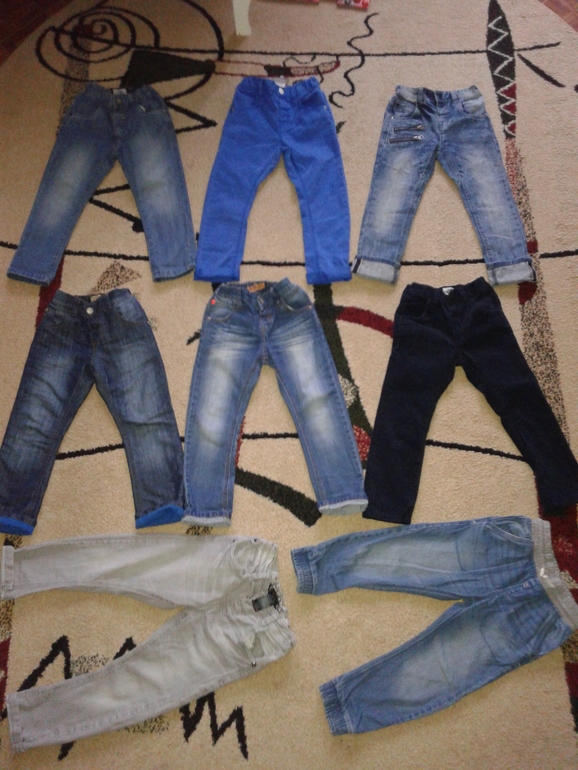 Джинсы-брюки. Все любимый Next. Верхний ряд размер 104-110, остальные 98-104. Нужно еще купить цветных брючек (бежевый или желтый, зеленый или красный), но пока нет наших размеров.....