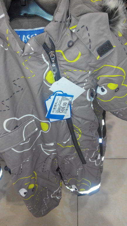 Он плюс 6 идет. На рост 73 (в ноябре) брала 80 размер. Вернее взяли 74, но там совсем небольшой запас был и поменяли на 80. Честно не знаю сколько мы сейчас, но комбез пока чуть великоват. Утеплителя в нем 180 гр. откатали зиму в коляске (правда у меня в ней еще меховой конверт). Для ходячих активных деток самое то.