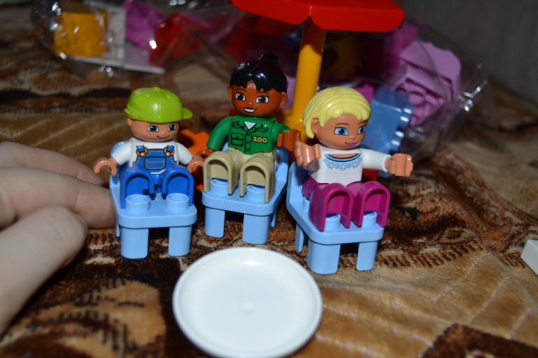 ИгрушкиОчень крутой! Моей Аише нравятся человеческие фигурки лего, а животные, так... чтобы на них куколок катать! К тому же мы любим в посудку играть! Единственное чего мне не хватило в данном наборе, так это кружечек, чайник есть, а чай налить некуда(((