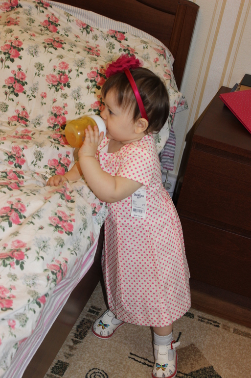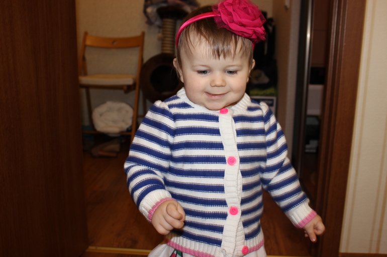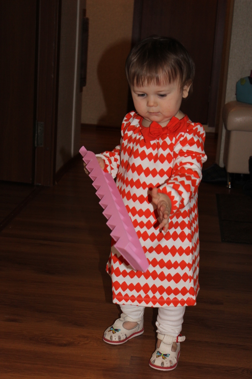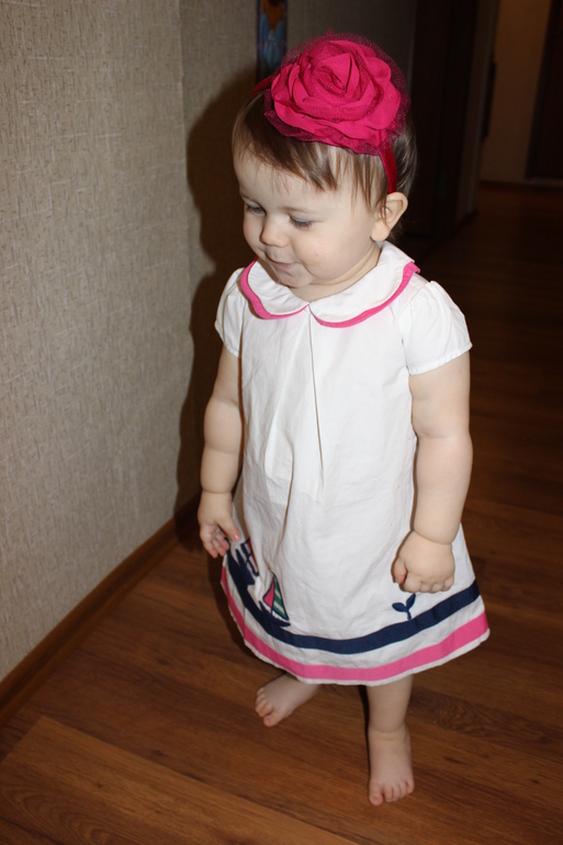 Платье ошкош, на 2 года. Пока свободновато. Не знаю на сколько ей убодно будет в длинном, но посмотрим.