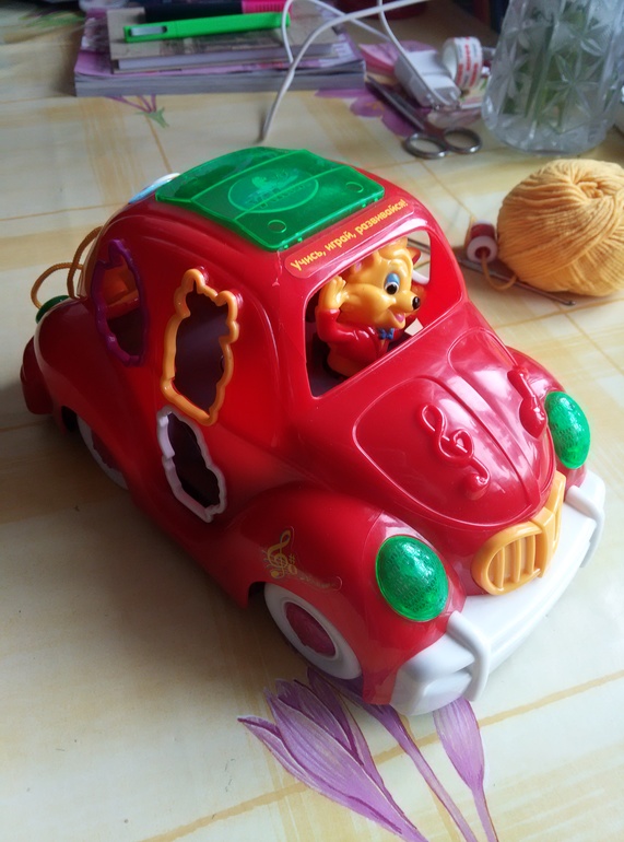 Формочки для сортера настолько мелкие, что я их убрала. И они застревают в самой машине, то есть когда багажник открываем не все выпадают, а в отверстиях над колёсами застревают.