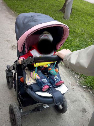 Потом когда мы покатались на ней сегодня могу сделать вывод.:ЦВЕТ- капор чёрный думаю будет жарить летом , КОЛЁСА ТРЕЩАТ, СИДЕНЬЕ вроде выглядит нормально. но дочка у меня СКАТЫВАЕТСЯ в одежде, замучились её подтягивать чтобы сидела. Этого то я и боялась...