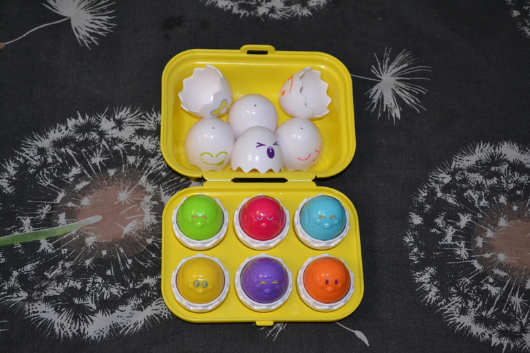 Мой яйца тоже оч любит)) супер игрушка! Не ожидала. Купила на 1,6 через месяц уже раскладывал правильно, просто формы хорошо знает, а цвета совсем не знает, так что скорлупки хаотично одевает))