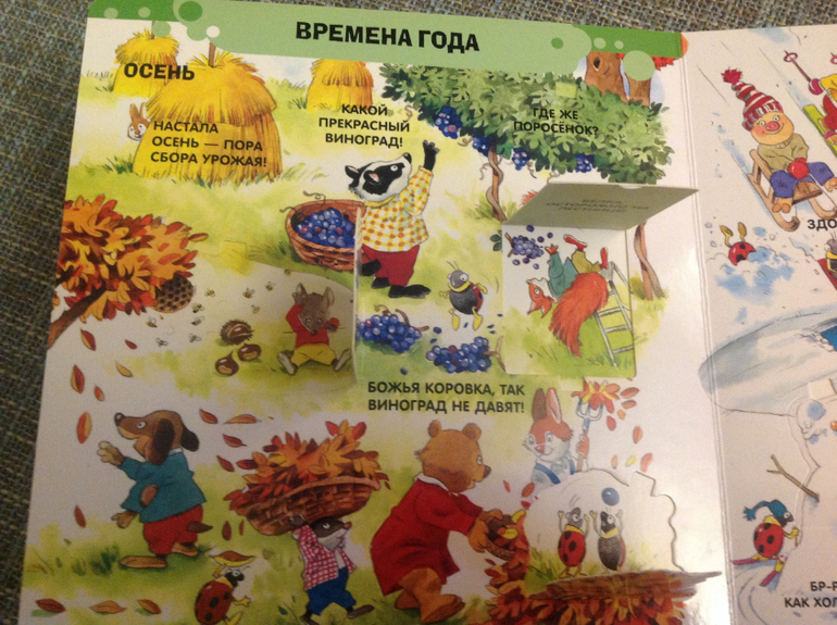 Классная книга! Думала как-то о ее покупке, но отказалась — мой бандит оторвет эти окошки на раз, жалко будет книгу:)