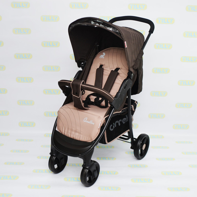 вот нашла Характеристики коляски Carello Quatro:Легкая алюминиевая рама.Удобный механизм складывания (книжка).Поворотные передние колеса с фиксатором.Безопасный тормозной замок на оба задних колеса одновременно.Вместительная корзина.Регулируемая спинка.Съемный бампер.Пятиточечные ремни с мягкими накладками.Теплый большой чехол на ножки. Размер в разлож. виде, ДхШ, см.86x51Размер в слож. виде, ДхВхШ, см.-Размер люльки, ДхШ, см.83x35Вес, кг.8,1Макс. грузоподъемность, кг.20Тип складыванияКнижкаСмотровое окноЕстьРегулировка спинкиВсе положения, включая «лежа»БамперЕсть, съемныйКорзинаЕсть, вместительнаяТип колесПрередние поворотныеМатериал колесПолиуретанАксессуарыЧехол на ножки