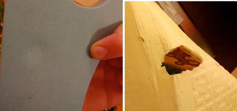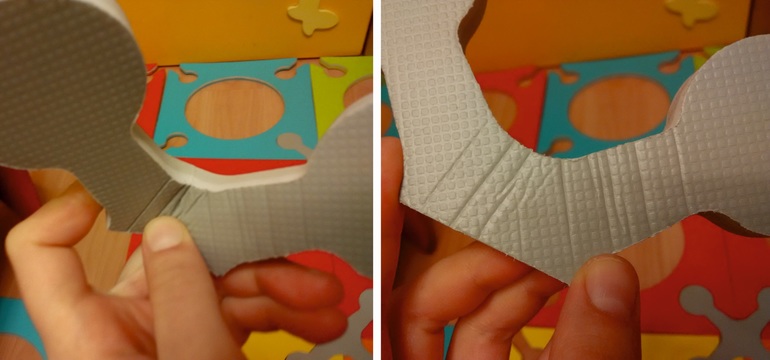 3. Коврик не так просто растерзать - если только специально не пытаться его разорвать (что не без усилий сможет и взрослый человек). Гнутые детали легко принимают свой почти первоначальный вид.