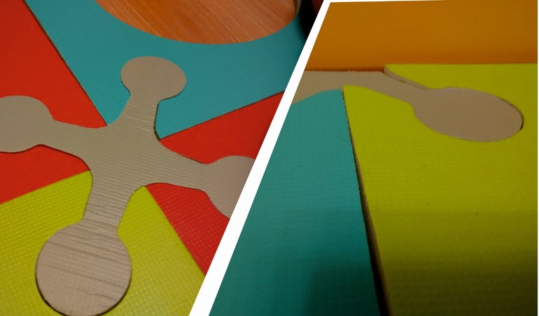 2. Коврик сделан не только для детей, но и для родителей. Даже если оставить на нем ребенка голопопить и малыш покакает пописает, убрать лужу будет довольно-таки просто - несколько деталей поднять-помыть-высушить, в это время оставшийся коврик может использоваться и дальше). Кроме этого, впитываемость фома минимальна. Да и вообще в уходе он очень хорош! Пока производила уборку, коврик собрала "в кучку" - отложила в сторонку, потом дети возвращали его на пол сами =)