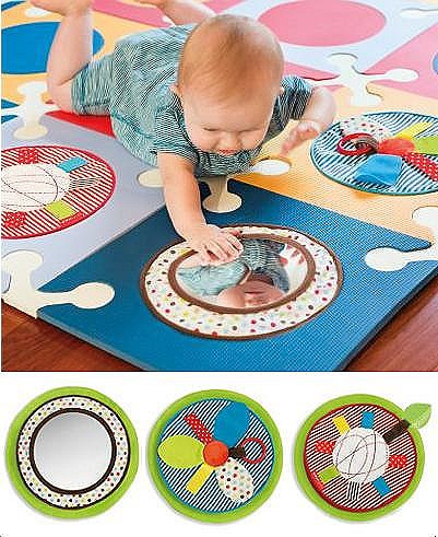 Мало того, полистав сайт производителя, наткнулась на интересное дополнение к таким вот пазловым коврикам - Playspot funspot activity circles - круглые вставочки с интерактивными элементами для малышей (фото с сайта производителя). Кстати, все коврики серии Playspot между собой совместимы, т.е. при желании можно комбинировать разные наборы, создавая свое уникальное половое ковровое покрытие! =)