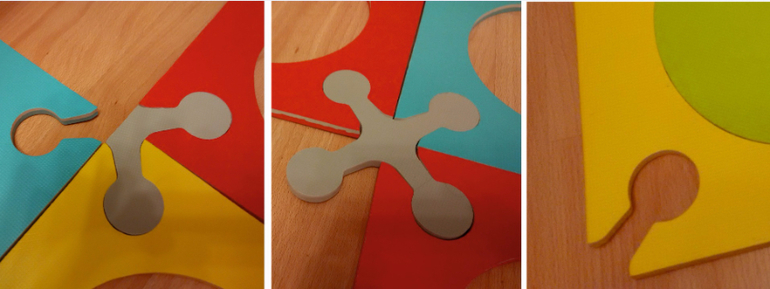 Ммм, кстати, мне понравилось то, что в отличие от цельных ковриков, с тайлами коврика-пазла можно "обогнуть" мебель... По крайней мере, в некотором роде... Правда, если загибов-поворотов слишком много, тайлов с закругленными краями из одного набора явно недостаточно, но все же.. И соединительные части торчат или, наоборот, отсутствуют... Хотя, опять же, при необходимости, можно соединительные части приспособить под свои потребности - канцелярский нож в помощь =)