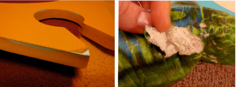 ВЕРХНЕЕ ПОКРЫТИЕ. Юримовское отстает прямо с внутренностями при каких-то механических повреждениях, у скипхопа отходит просто верхнее покрытие. Юрим клеить можно, но будет сильно ощущаться комочек клея под ногами (внутренности мягкие застынут), в скипхопе последствий подклейки не ощущается.