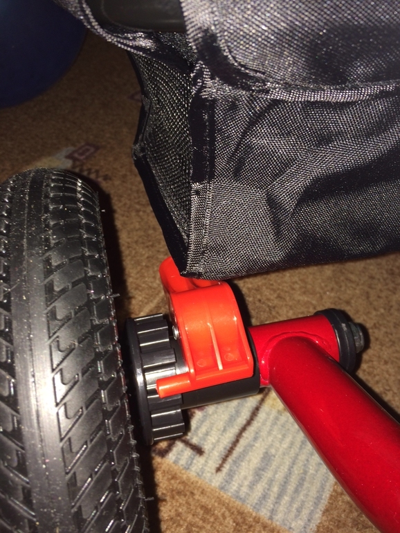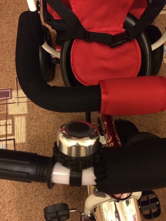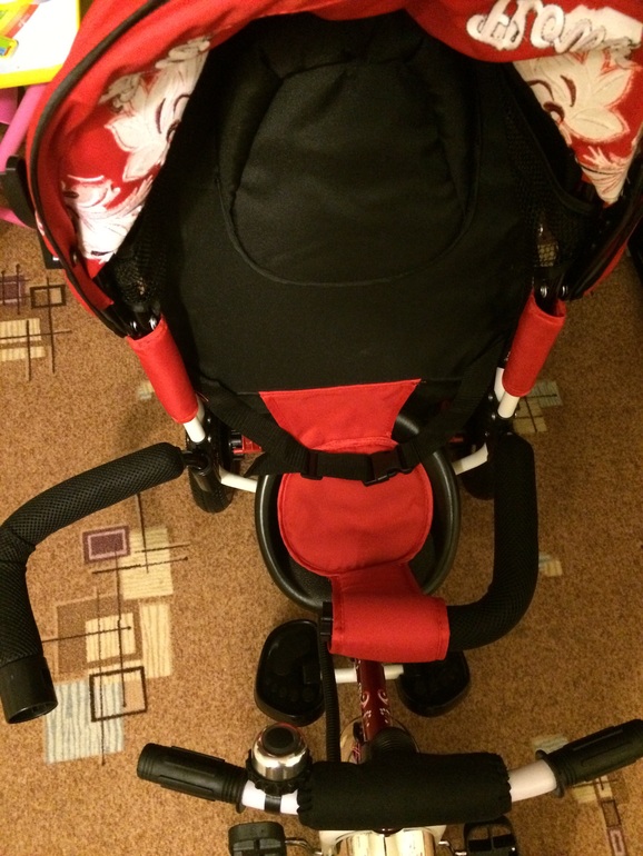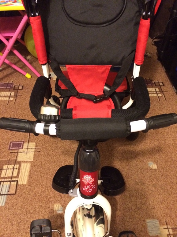 Велосипед не маленький, довольно внушительных размеров, ручка удобная, ткань хорошая, сшито все хорошо, цвет яркий-насыщенный, нитки НЕ торчат( хоть и Китай), пластиковые детали из хорошего пластика, звоночек работает, резина хорошая. В целом, мы очень довольны! Доченька, конечно, довольна больше всех!