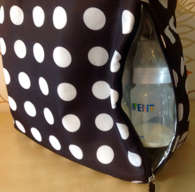 Впереди два маленьких и один большой карман на липучках, в большой входит журнал полностью А4, сзади тоже большой карман вроде как для пеленального коврика, но он с ней не идет :( С одного бока карман из сетки для бутылочки, но я в него бутылочки не кладу -не гигиенично, мжно любую мелочь в нем ность. С другого бока термокарман, как видно по фото, в него вхидит одна бутылка или два стаканчика Авентовских. Термокарман держит температуру примерно два часа при нынешней погоде в ноль градусов. Внутри большое отделение на молнии, в нем 2 кармана для мокрых вещей и два обычных на резинке, в каждый входит две бутылочки, это чтобы прикинуть вместимость. Вот внутри она