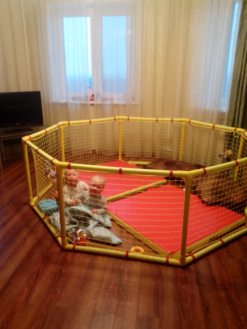 Я мама двух замечательных близнецов-мальчишек) как только малышки начали ползать и залезать туда ,куда не следует маленьким деткам,задумались о покупке манежа. В инете искали долго, но в основном всё одно и тоже ,немецкие металлические или деревянные громозские и цена у них космическая . Хех ))))) нашли наше отечественное, пластмассово-сетчатое )))) вот оно это чудо, где и деткам раздолье и мама или папа может с ними поволяться-поиграть ))