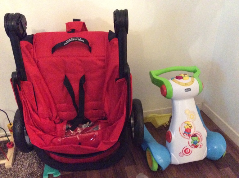 Выбирала транспорт нашему малышу на прогулки полгода точно. Парень не маленький-1,5года 13,8кг. Наш вездеход стал вместе с ребенком тяжеловат.