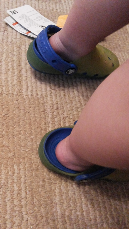 Детская обувьДа да, всем надоевший crocs и я сегодня купила в размере 8-9. Нога сейчас 14.3-4. Размер 6-7 туговат в подъеме и боюсь перерастем, на все лето не хватит, а 8-9 кажется слишком большой. Фото в 8-9 и последнее в 6-7