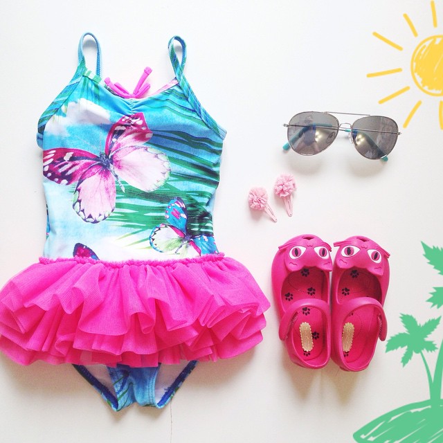 Итак, начнем с пляжного лука))всем известный купальник next, туфельки mini melissa, очки и заколки h&m