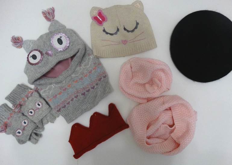 И наши головные уборы. Спасибо магазину accessorize. Две шапки, перчатки, меховые наушники и сумочка (про которые я забыла) и все удовольствие за 800 руб