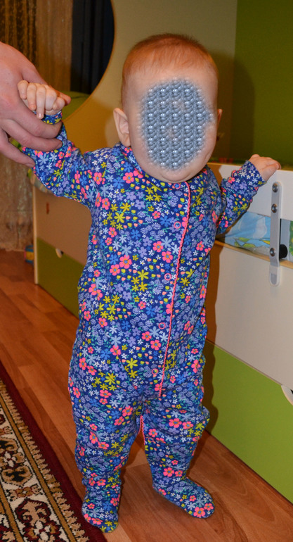 С розами 18 мес, с легинсами комплект 12 мес. (продала, маловат нам). Рост 78 см вес 11400 г. С розами сидит отлично!