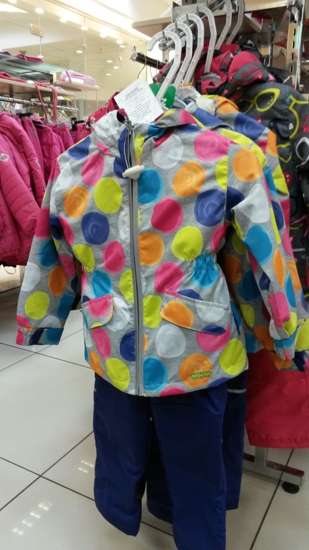 Да, носили в прошлом году, размер 24 месяца, курточка черная с перьями розово-бирюзово-желтыми и розовыми брючками. Подстежка флисовая кофта и флисовая шапка с завязками розовые. Куртку носили и летом в дождь, подкладка хлопковая. Ткань на куртке гладкая, на штанах шершавее, непромокаемая для небольшого дождя, в ливень промокает. Мне понравился, поэтому заказала новый, из того костюма выросли. И еще, зимний дюпардю тоже носили, так именно зимние очень широкие на мою стройняшку, а демисезон отлично для нас.