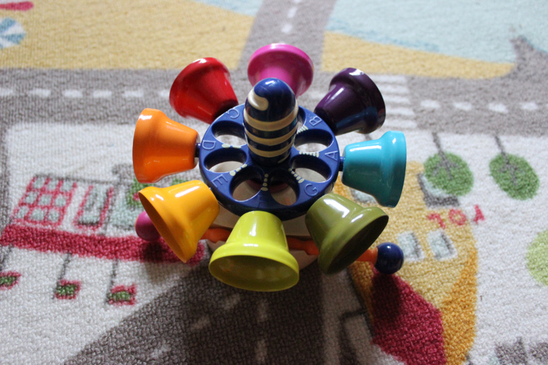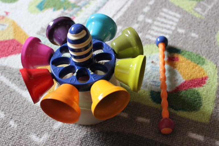 Ну, и на десерт, наше последнее приобретение. Это Карусель колокольчиков от Battat. Такой своеобразный металлофон. На эту игрушку я с тоской смотрела наверное около полугода, все терзалось надо оно нам или нет. И стоило мне остыть, как на Wildberries случилась акция на игрушки и она была в том списке. Добрая фея Виктория, помогла оформить заказ со своей максимальной скидкой и карусель мне обошлась в 1500р, что меня конечно не могло не порадовать! Скажу только что игрушка превзошла все мои ожидания! Она очень понравилась сыну, он достает ее каждый день и играет как завороженный. Звук очень звонкий и чистый, у каждого колокольчика. На палочке два разных конца - при соприкосновении с колокольчиками звук идет громче или тише. В комплекте идет книжечка с мелодиями, но мы пока ее не изучали. Карусель великолепно вращается и ее яркие цвета сливаются в радугу. Мне самой она очень нравится, я думаю даже если сын остынет к ней, я оставлю ее все равно, сама часто раскручиваю карусель и слушаю умиротворяющие звуки. Конечно ценник на нее просто космический, у Баттат вообще игрушки дорогие. Но колокольчики и правда чудесные!