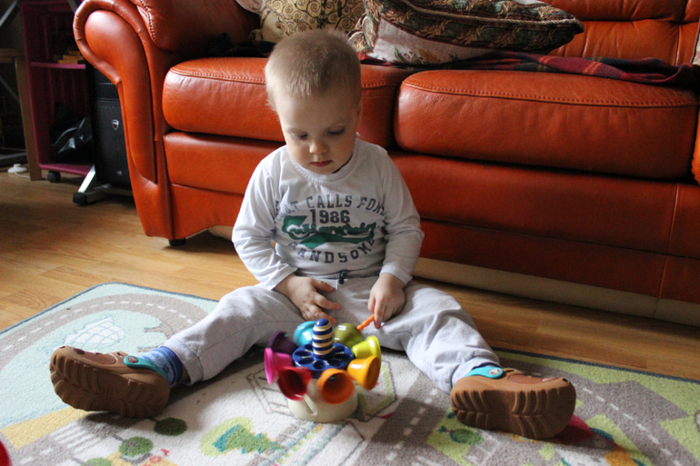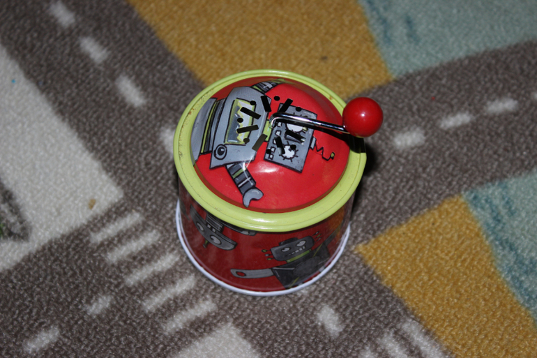 Шарманка. У нас от Egmont Toys, с роботами. Тоже очень любимая игрушка, примерно с 10 месяцев. Музыка очень приятная и спокойная. Но недавно Костя ее видимо неудачно уронил и внутри стал болтаться механизм, а открыть ее никак нельзя, она запаяна. Это очень печально. Испытание на прочность она не прошла, хотя не могу сказать что Костик сильно "вандалит".