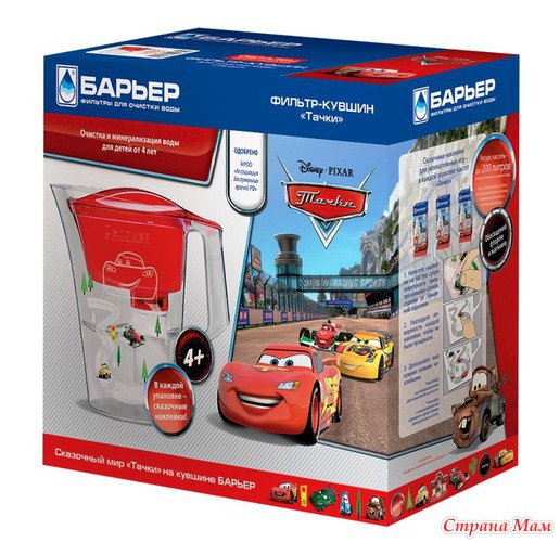 У меня на кухне как раз Барьер, брала специально для ребенка отдельный кувшин, купила — Винни и его друзья, который с 3 месяцев можно, пишут, что очищает от бактерий. Ребенку наклейки в радость, с удовольствием наклеивает их на кувшин)) и довольная, что у нее собственный кувшин. А мне удобно, что есть механический индикатор ресурса кассеты, если замотаюсь и забуду))