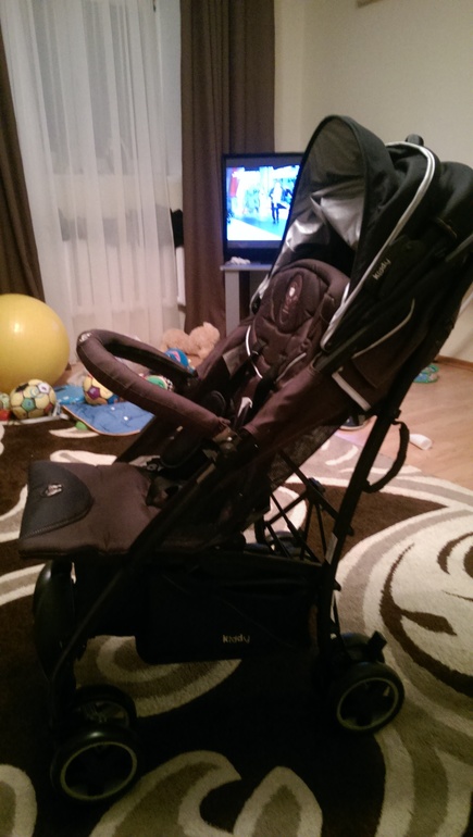 Выставка наших колясок (только хвасты)Вот и я решила похвастаться. Купила Где-то месяц назад,покатала,протестировала,пишу:легенькая(после навингтон каравел),хорошо взбирается на бордюр,маневренная,без труда заходит в лифт,легко складывается и разкладывается,хороший капор разкладывается почти до бампера,лежачее положение почти горизонтальное и легко опускается и поднимается одной рукой,вместительная корзина(ну не такая как в навингтоне,но для трости большая). Впечатление от неё хорошеё. Не тарохтит,ну конешно по очень плохой дороге вибрация ощутимая,но ребёнку это не мешает. А теперь немного минусов(ну как без них):не понравилась глубина сиденья-маловато будет;когда поднимаю подножку в сидячем положении у ребёнка ножки ощутимо выступают за пределы её,висят как будто;в комплектации нет дождевика и москитки(купила универсальные за 260 грн). И ещё буду шить матрасик,потому как сетка,а погода не всегда хорошая. Буду рада если кому то пригодилась моя писанина. Попробую ещё загрузить фотки,если получиться.